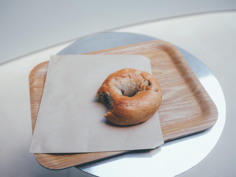 白い空間でベーグルを食べるのは中々贅沢。いやこのベーグル滅茶苦茶うまいな…