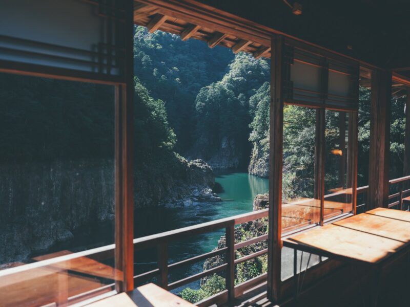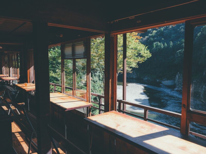 中からも絶景が見られ、ただ静かに川の音と澄んだ空気だけが入ってきます